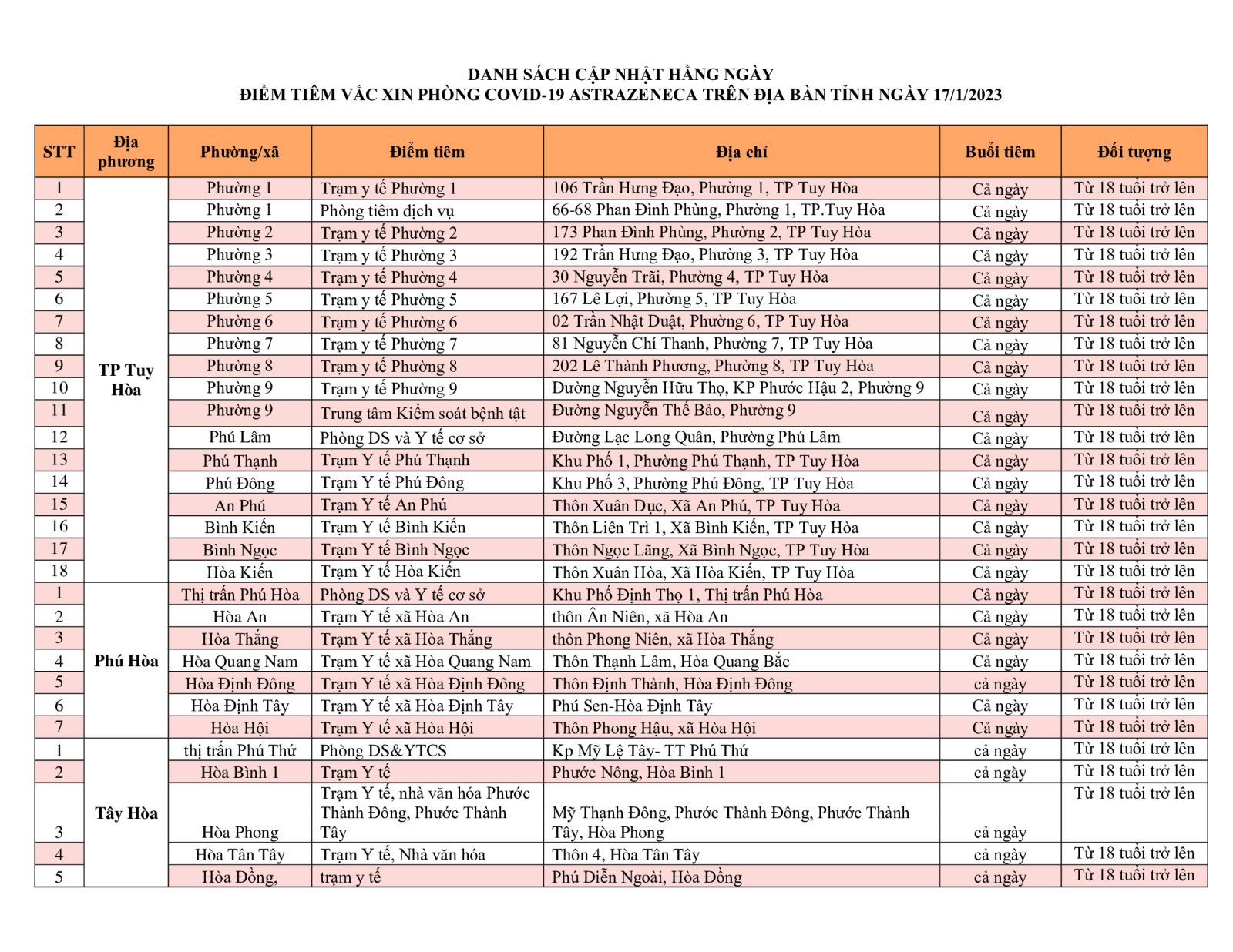 Thứ 3, 17/01/2023 | 08:58 A- A A+ | Danh sách các điểm tiêm vắc xin phòng COVID-19 AstraZeneca ngày 17.1.2023 Đọc bài Lưu Tác giả: BBT Tổng số điểm của bài viết là: 0 trong 0 đánh giá Click để đánh giá bài viết
