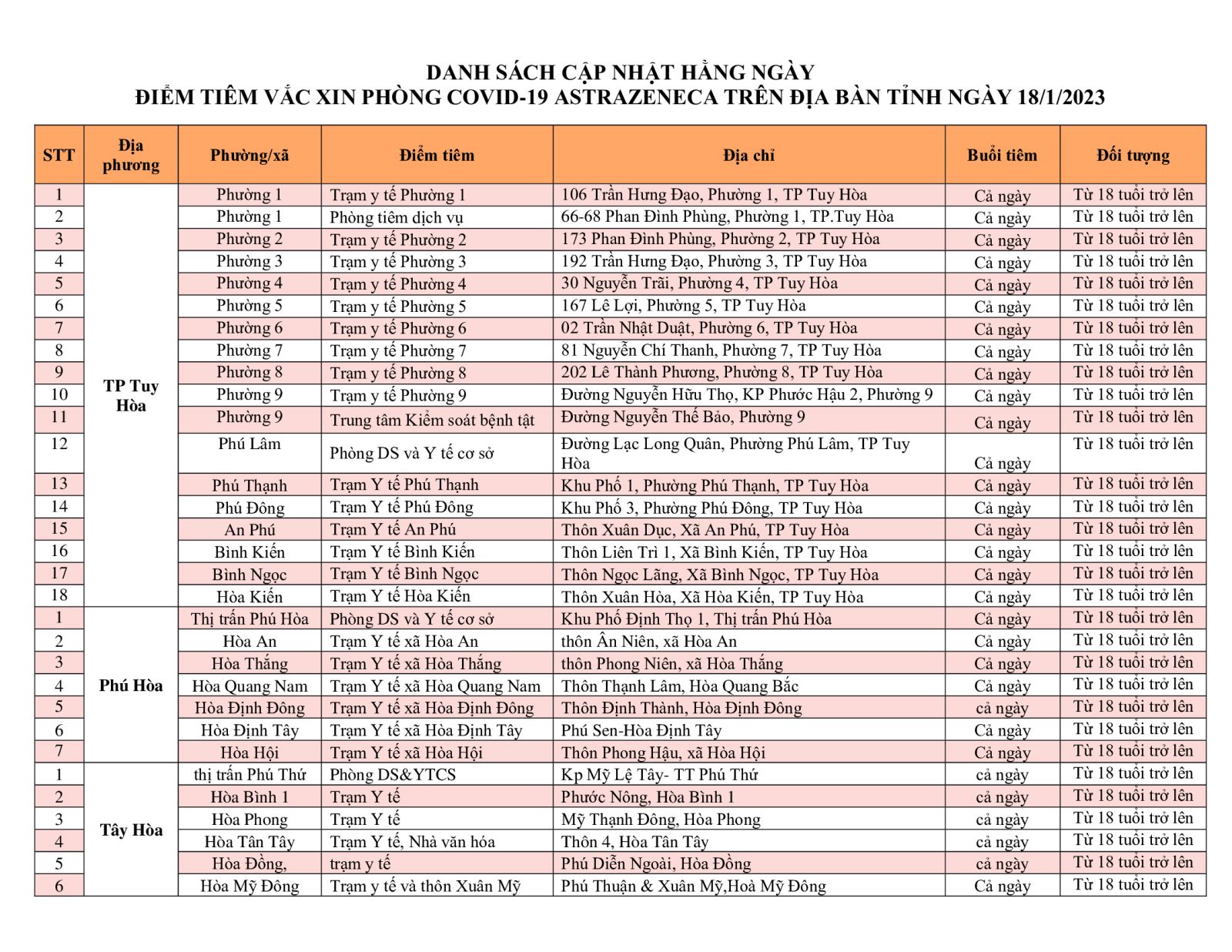 Thứ 4, 18/01/2023 | 08:57 A- A A+ | Danh sách các điểm tiêm vắc xin phòng COVID-19 AstraZeneca ngày 18.1.2023 Đọc bài Lưu Tác giả: BBT Tổng số điểm của bài viết là: 0 trong 0 đánh giá Click để đánh giá bài viết