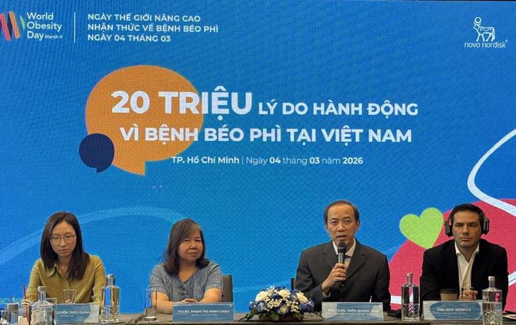 Thông tin trên được các chuyên gia, bác sĩ cho biết tại buổi họp báo “Nâng cao nhận thức về bệnh béo phì, 20 triệu lý do hành động vì bệnh béo phì tại Việt Nam” vào sáng 4-3 tại TP.HCM, nhân Ngày Thế giới nâng cao nhận thức về bệnh béo phì năm 2026.