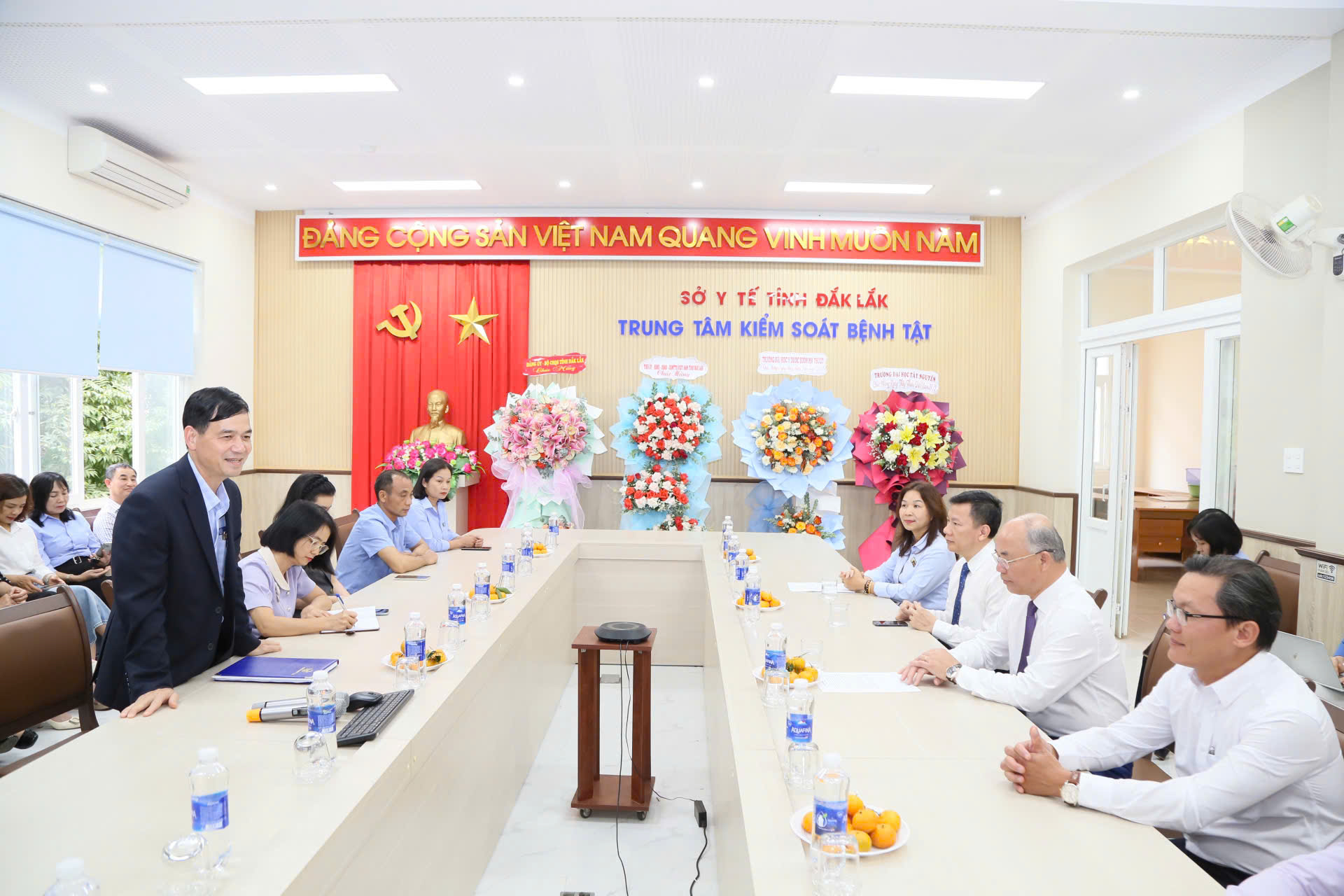 Trong 02 ngày, từ 25- 26/02, Trung tâm Kiểm soát bệnh tật tỉnh đã vinh dự được đón tiếp nhiều đoàn lãnh đạo, đơn vị đến thăm và chúc mừng nhân kỉ niệm 71 năm ngày Thầy thuốc Việt Nam (27/02/1955-27/02/2026) như: Đại diện lãnh đạo UBND tỉnh, Sở Y tế, Bộ Chỉ huy quân sự tỉnh, Trại giam Đắk Trung, Trại giam Đắk Tân, Trường Đại học Y Dược Buôn Ma Thuột, Trường Đại học Tây Nguyên, Trường Cao đẳng Bách khoa Tây Nguyên…