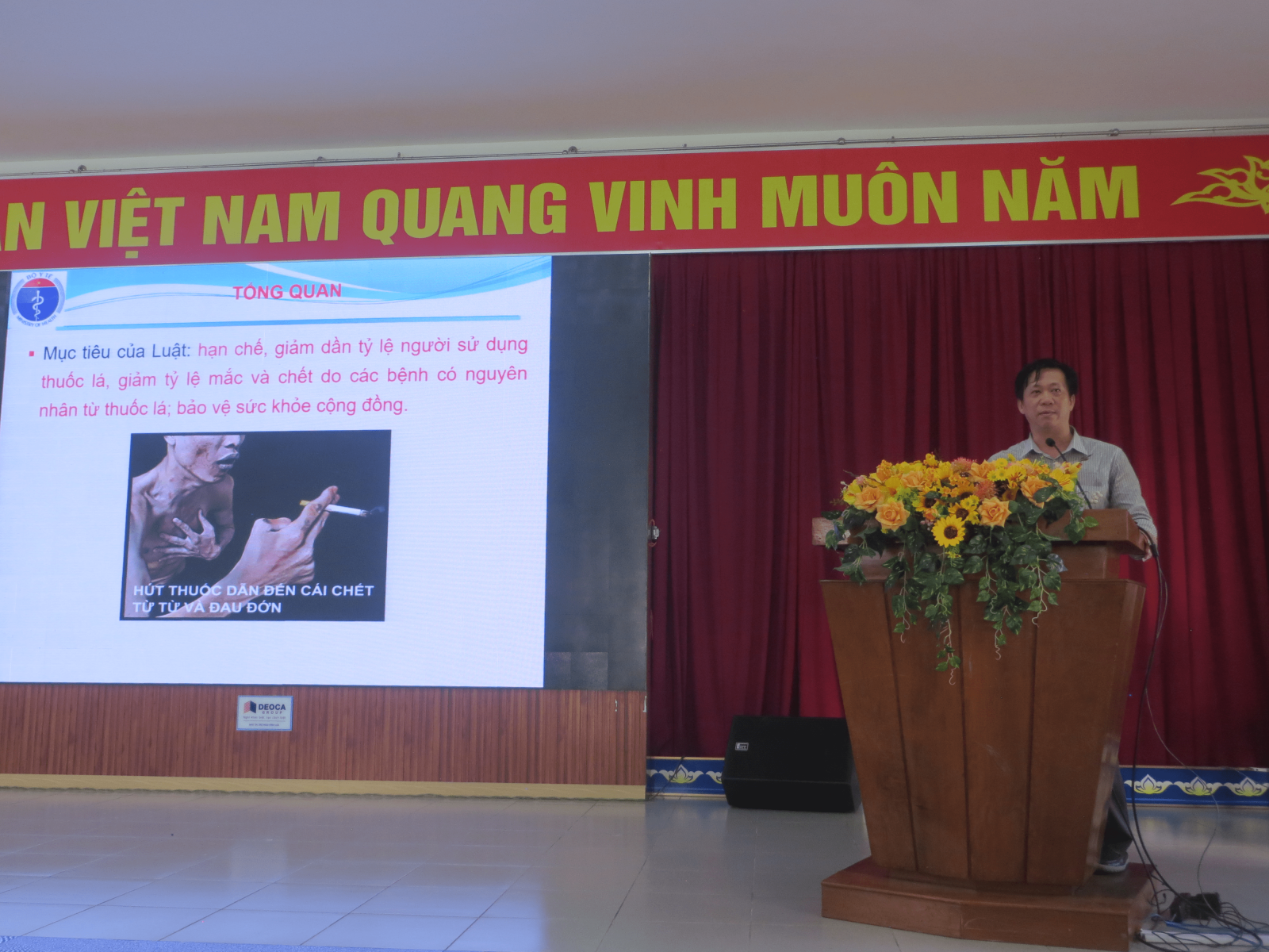 Bs.CKI Châu Trọng Phát, Giám đốc CDC Phú Yên chia sẻ một số nội dung về tác hại của thuốc lá đối với sức khỏe của con người nói chung, đối với giới trẻ, thanh niên nói riêng. Bên cạnh đó, thuốc lá thế hệ mới như; thuốc lá điện tử, thuốc lá nung nóng đang ngày càng phổ biến trong giới trẻ, trong lứa tuổi học sinh, sinh viên. Nhiều bạn trẻ, học sinh, sinh viên có suy nghĩ chưa đúng về thuốc lá điện tử, thuốc lá nung nóng. Qua đó, Bs Châu Trọng Phát cũng đã giới thiệu những tác hại, những rủi ro khi sử dụng thuốc lá điện tử, thuốc lá nung nóng. Đây là những sản phẩm thuốc lá chưa được phép lưu hành trên lãnh thổ Việt Nam. Buổi truyền thông cũng phổ biến thêm các quy định của Luật Phòng chống tác hại của thuốc lá, hướng dẫn xây dựng môi trường không khói thuốc lá trong trường học, một số thông tin về nghiện thuốc lá và các biện pháp can thiệp để cai nghiện thuốc lá.