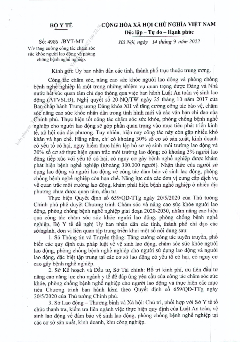 | Số hiệu | 4986/BYT-MT | Cơ quan ban hành | Bộ Y tế |