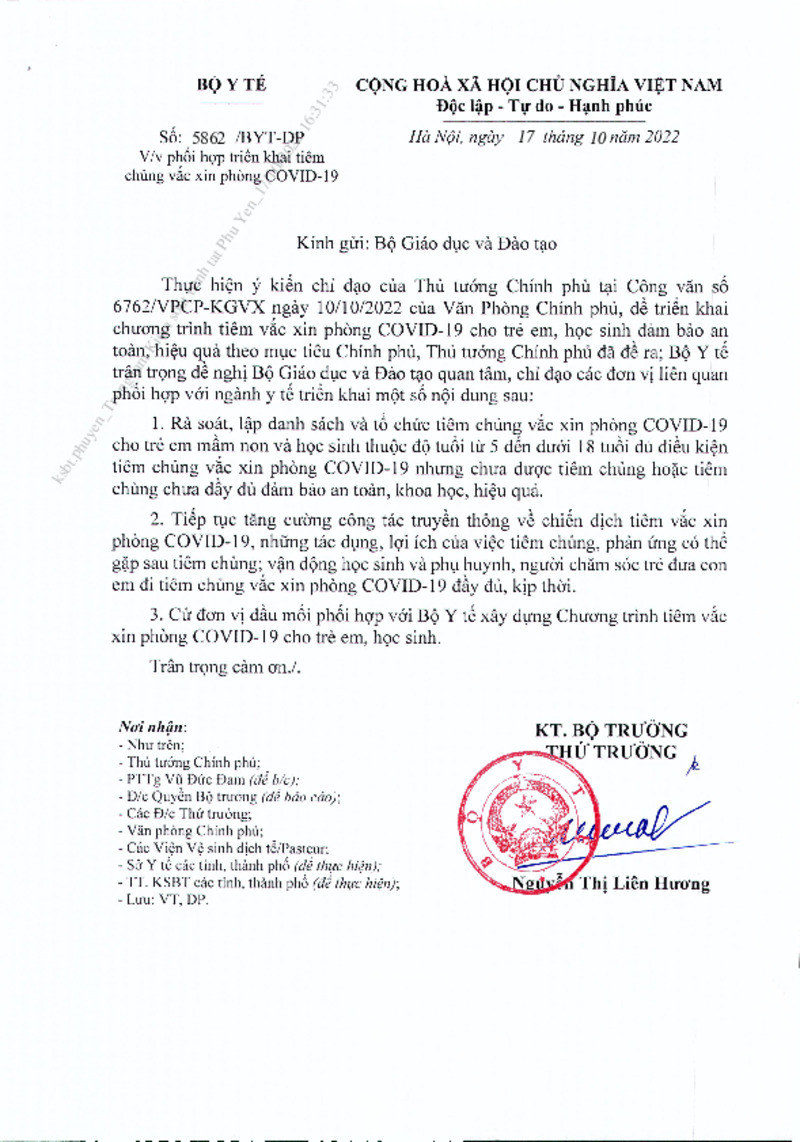 | Số hiệu | 5862/BYT-DP | Cơ quan ban hành | Bộ Y tế |