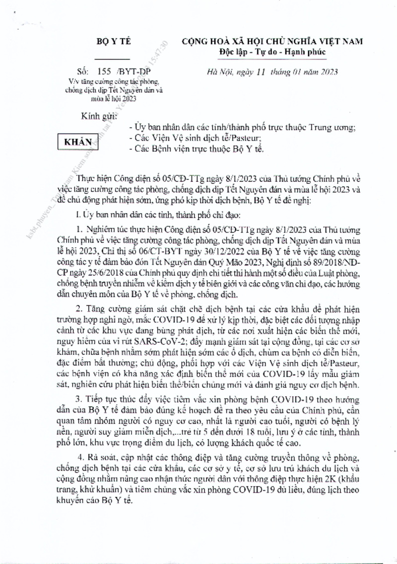 | Tiêu đề văn bản | V/v tăng cường công tác phòng, chống dịch dịp Tết Nguyên đán và mùa lễ hội 2023 | ||