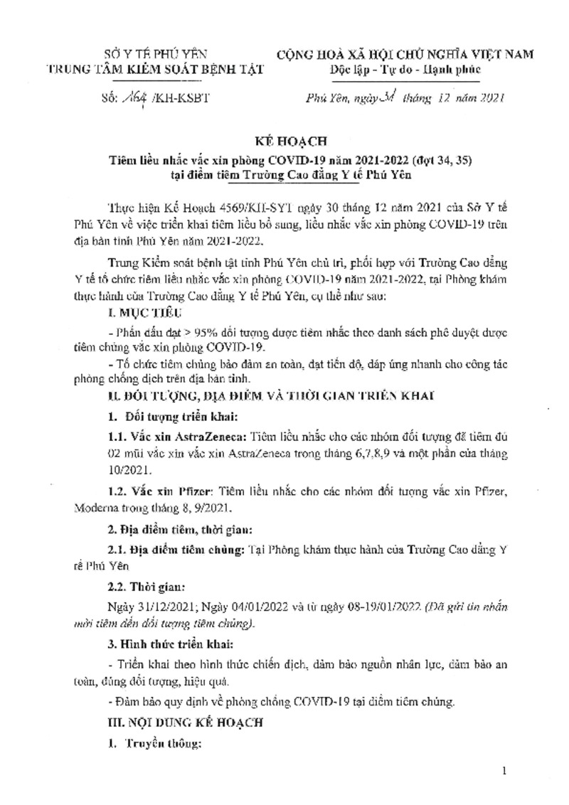 | Tiêu đề văn bản | KH tiêm nhắc vắc xin phòng COVID-19 năm 2021-2022 (đợt 34,35) | ||