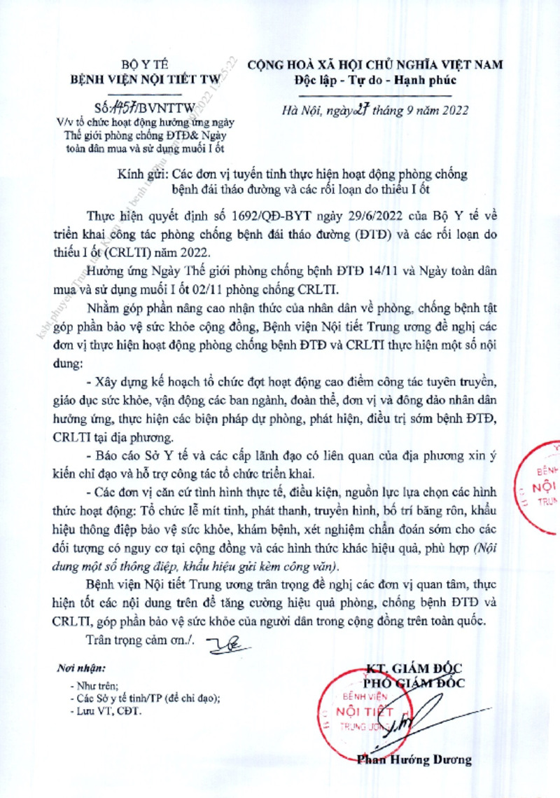 | Tiêu đề văn bản | Tổ chức hoạt động hưởng ứng ngày Thế giới phòng chống ĐTĐ & Ngày toàn dân mua và sử dụng muối I ốt | ||