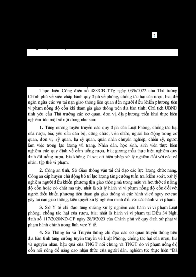 | Tiêu đề văn bản | V/v chấp hành quy định về phòng, chống tác hại của rượu, bia. | ||