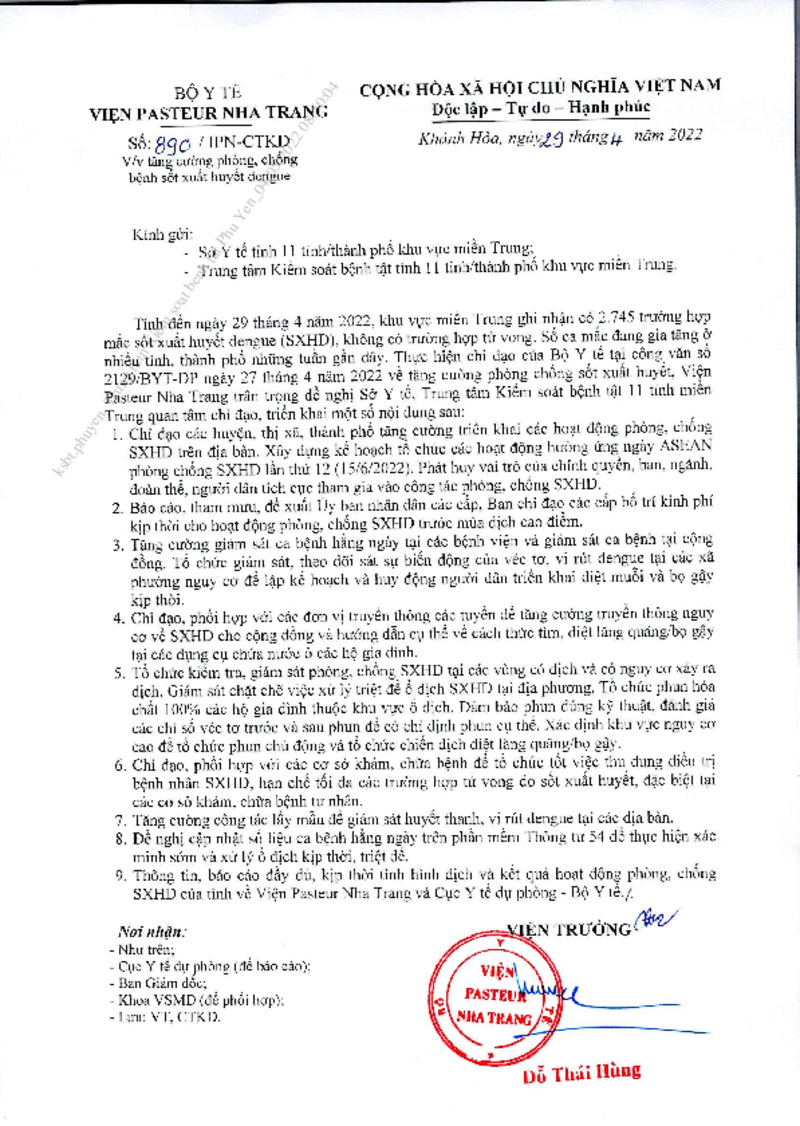 | Số hiệu | 890/IPN-CTKD | Cơ quan ban hành | Viện Pasteur Nha Trang |
