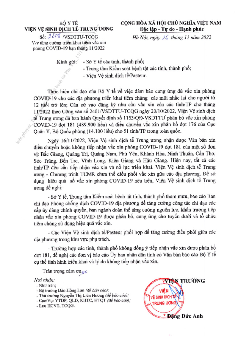 | Tiêu đề văn bản | Tăng cường triển khai tiêm vắc xin phòng COVID-19 hạn tháng 11/2022 | ||